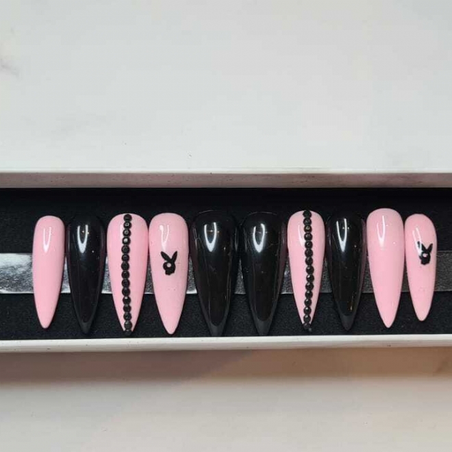 ![]() ![]() PressOn Nailset PlayBunnySKU 00452€ 37,50 Een leuk Playboy setje in Rose en zwarte contrasten, afgewerkt met zwarte strasssteentje en Playboy Bunny. Het setje betreft een Stiletto vorm maar is ook te maken in Coffin, Almond of Shortie. Ze worden op maat gemaakt, dus wij neme contact op voor de juiste afmetingen.